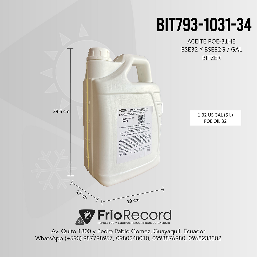 FRIORECORD S.A. ofrece aceites de refrigeración diseñados específicamente para compresores de sistemas de frío comercial e industrial. Contamos con aceites minerales, sintéticos y POE, compatibles con la mayoría de refrigerantes utilizados en el mercado actual. Nuestros aceites garantizan una lubricación óptima del compresor, ayudando a prolongar su vida útil y a mantener la eficiencia del sistema.
